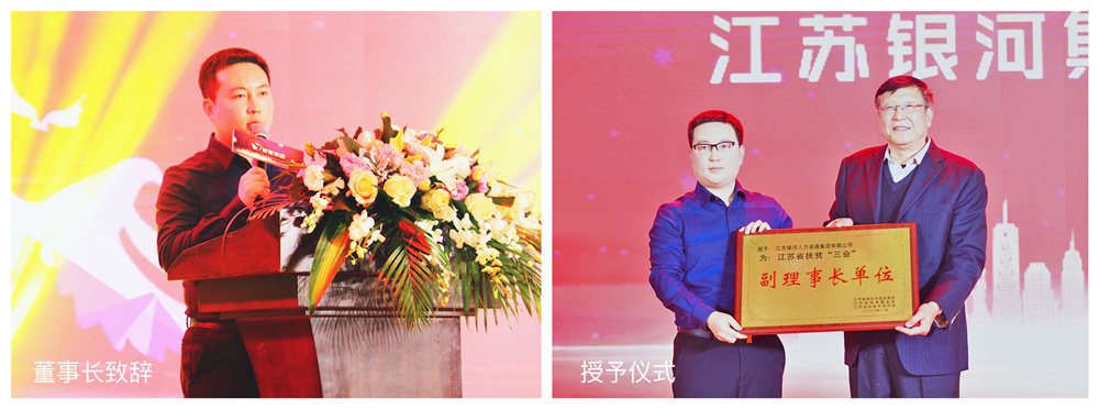 值得一提的是,近兩年,銀河集團公司全面落實黨中央、國務院“精準扶貧、精準脫貧”的一系列部署要求和中國老促會關于老區職教扶貧的工作安排,認真履行企業的政治責任,大力推進老區職業技能培訓,做到扶貧與扶惠一扶智相結合,通過扎實,有效的工作,為老區教育扶貧做出了積極的貢獻,因此,前來參會的中國老區建設促進會副會長曾廣超將軍對銀河集團的貢獻給予了肯定,并代表中國老區建設促進會對銀河集團2020年老區扶貧工作提出了希望和指示。江蘇省老區開發促進會特授予銀河集團“江蘇老促會副理事長單位”的稱號,任命曹勝強董事長為副理事長。莊重的授予儀式后,精彩紛紜的節目、豪氣滿滿的抽獎紛至沓來,高潮迭起、喜氣連連。正是今夜良宴會,歡樂難具陳。